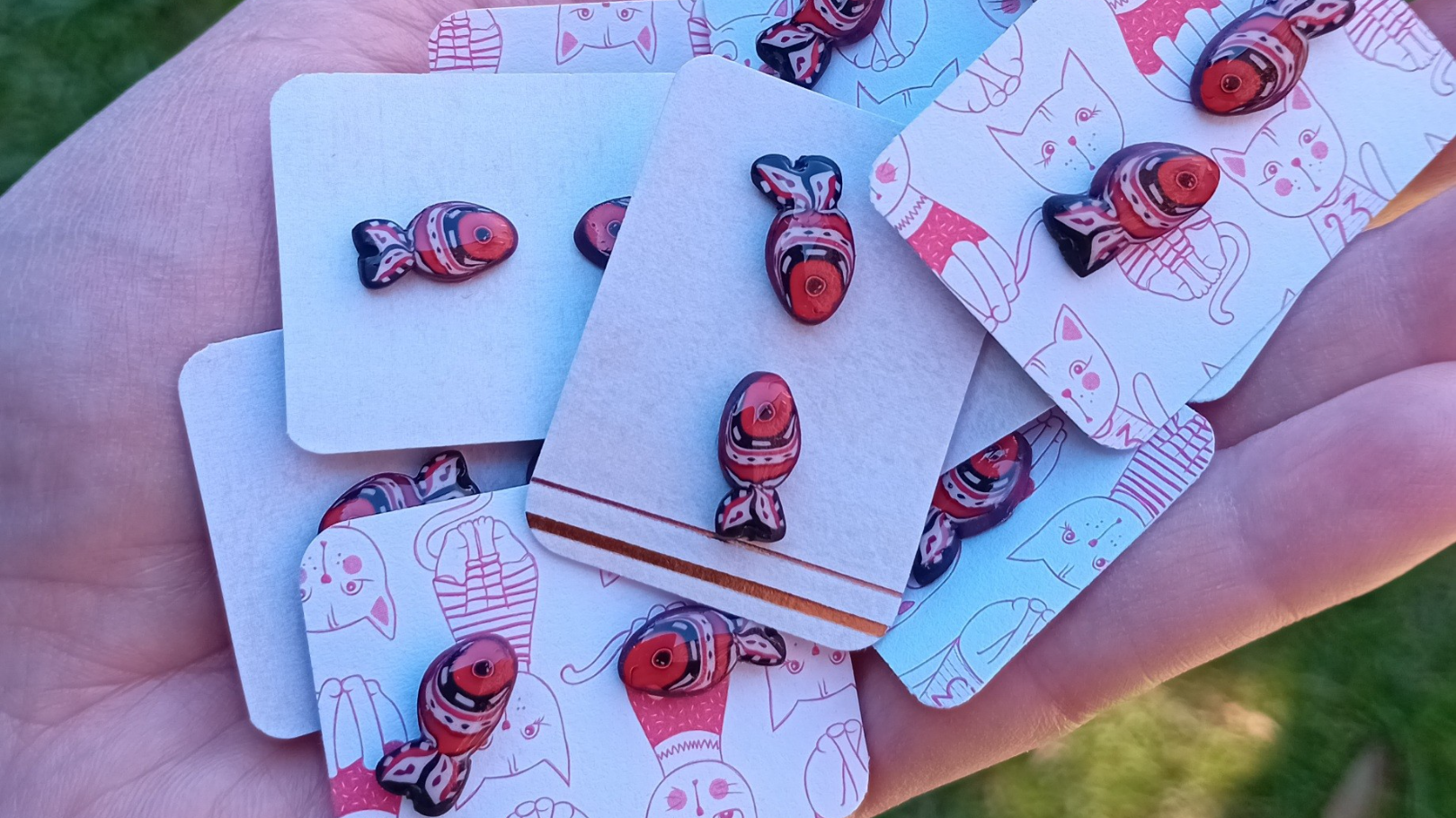 Boucles d’oreilles poisson rouge – Puces poisson clown artisanales – Bijoux faits main en pâte polymère – Acier inoxydable