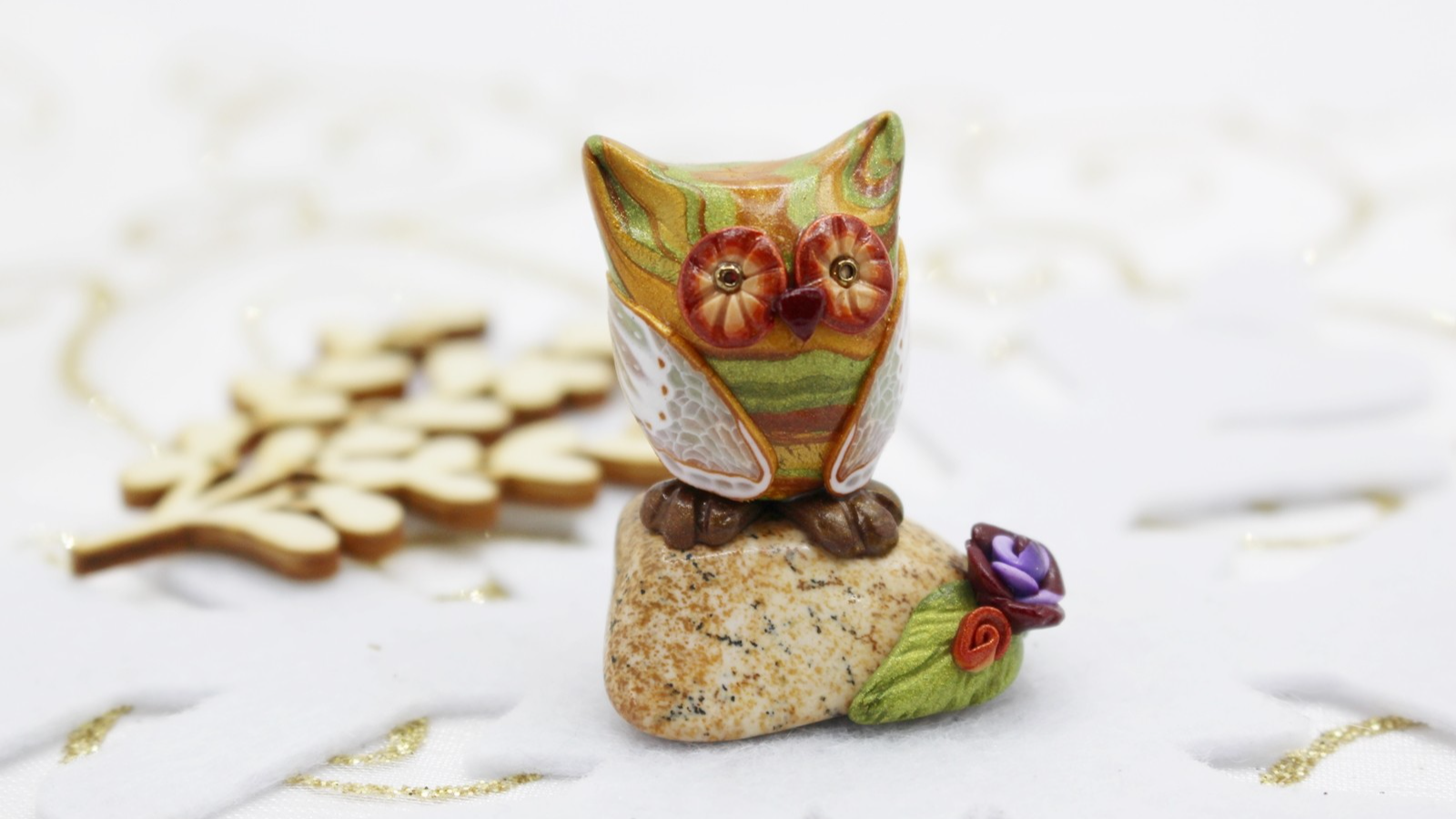 Figurine Hibou d'automne sur jaspe paysage , animaux totems