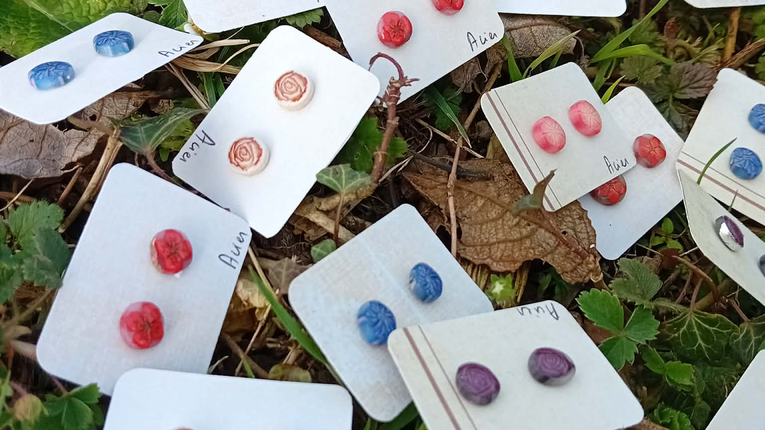 Puces fraise artisanales 🍓 – Puces fraise kawaii en pâte polymère – Bijou fruité fait main – Acier inoxydable anti-allergique