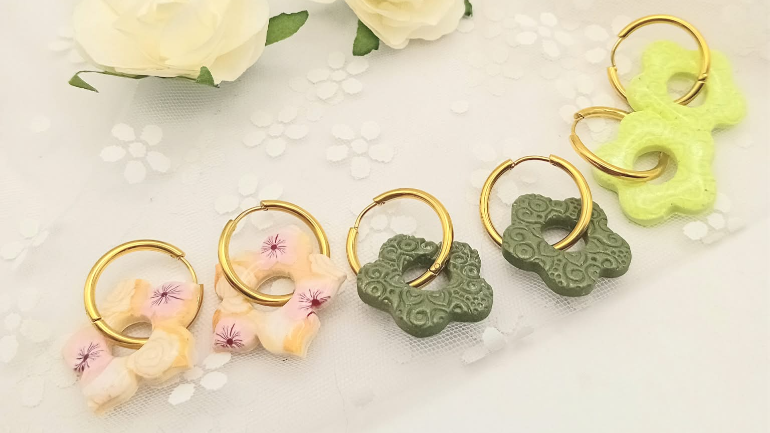 Boucles d'oreilles poulettes en fimo couleurs anis et grises