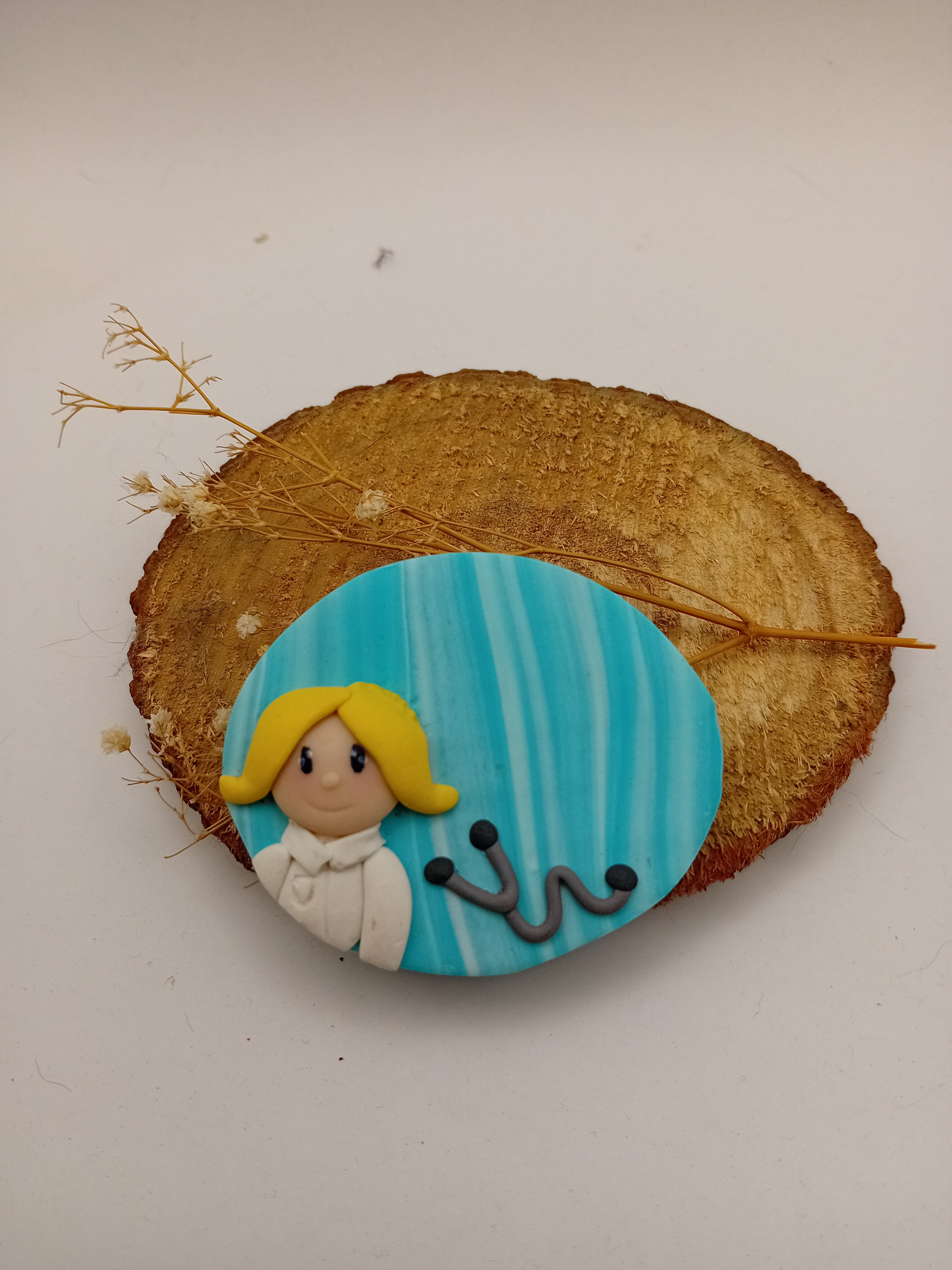 Badge fait à la main en argile polymère pour personnel médical ou vétérinaire