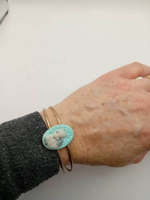 Ce joli bracelet très printanier représente une branche de cerisier fleurit sous un ciel bleu .