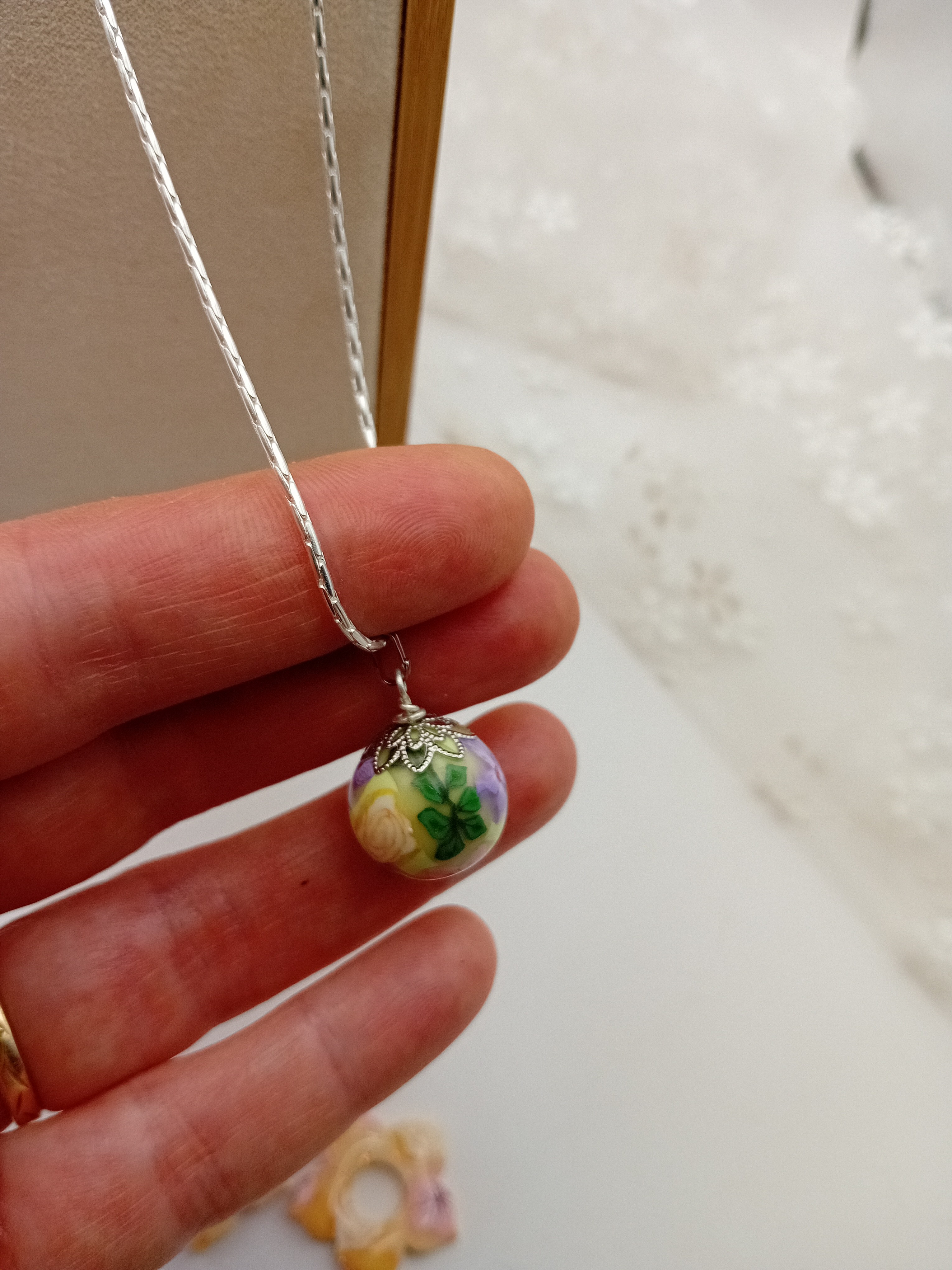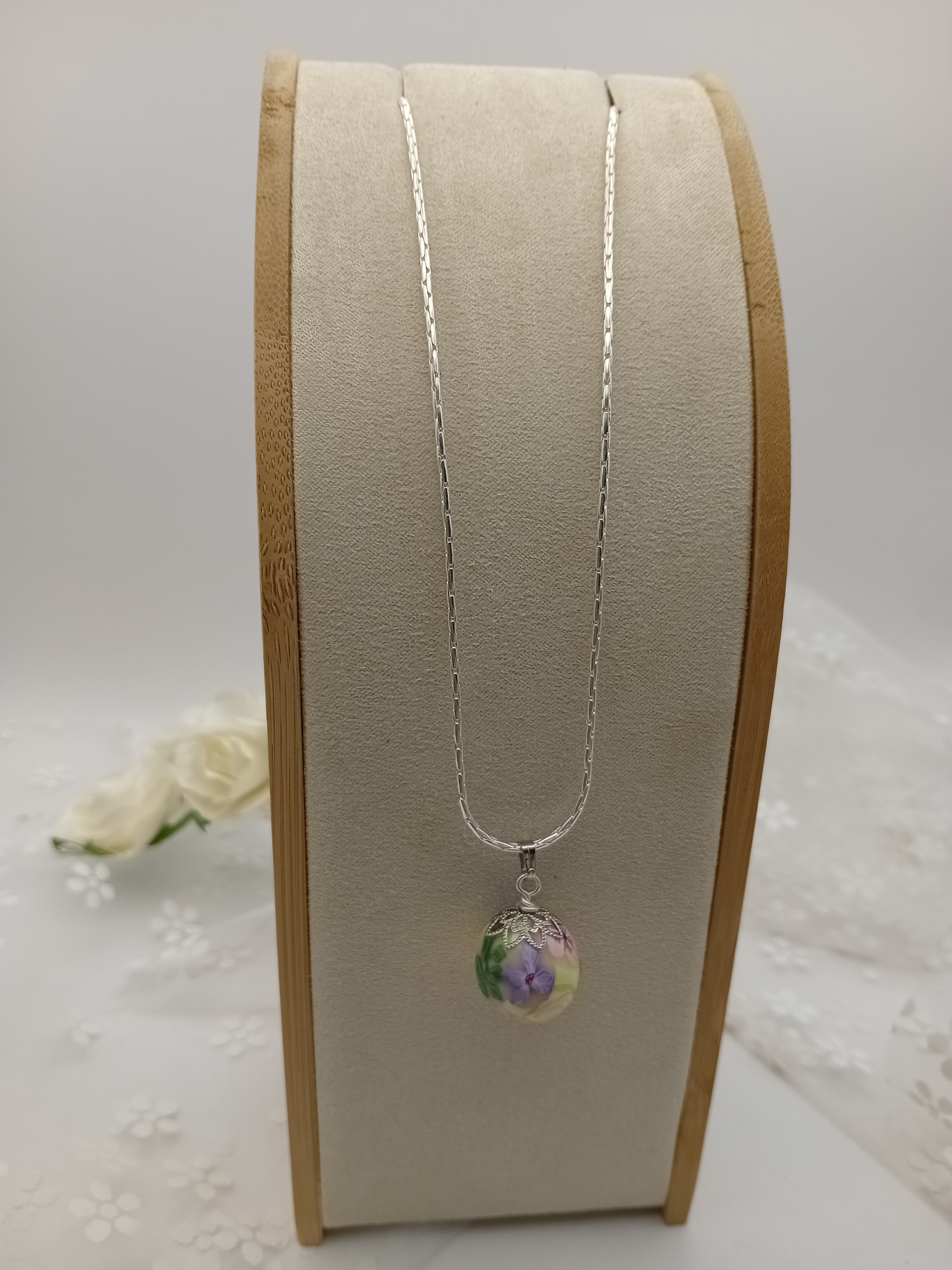 Collier avec pendentif fleuri en argile polymère