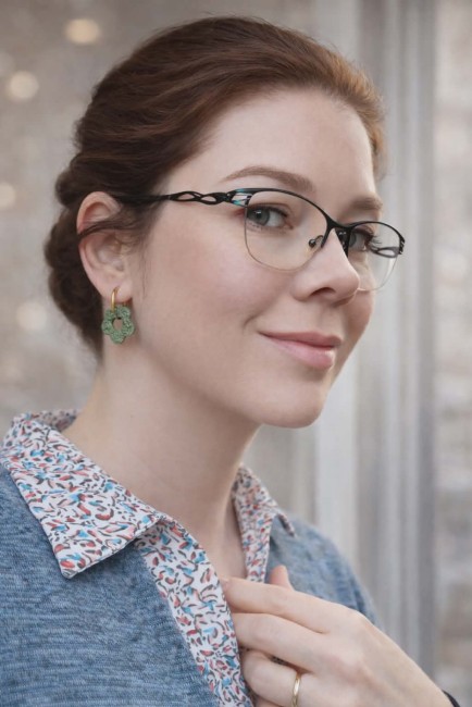 Ces fleurs aux motifs délicats de liberty sur fond d'un vert très doux sont résinées , ce qui leur procure une grande brillance. Elles apportent une touche de fraicheur à vos tenues.