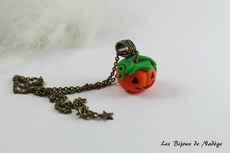 La citrouille est réalisée à la main en argile polymère ( pâte fimo ) et fera son petit effet pour halloween