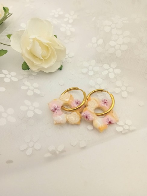 Puces d'oreilles roses crèmes artisanales – boucles d’oreilles en fimo – bijou fait main – idée cadeau femme